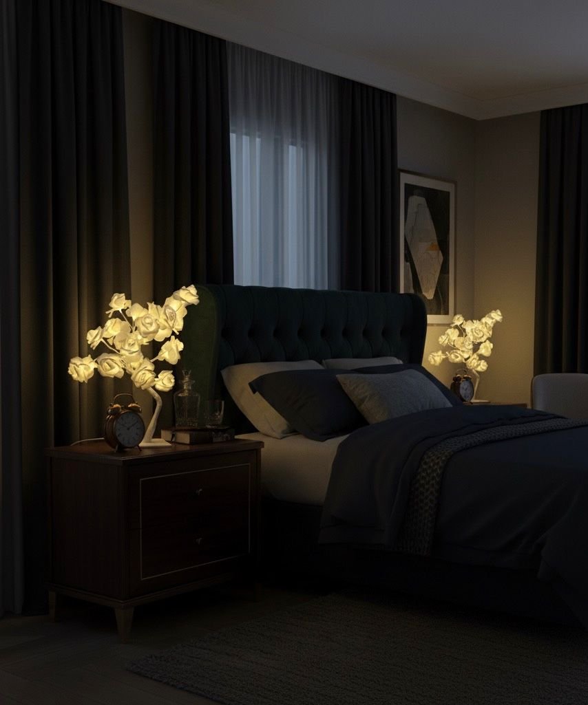 The soft golden light creates such a romantic atmosphere in my bedroom. Feels like a fairy-tale corner.