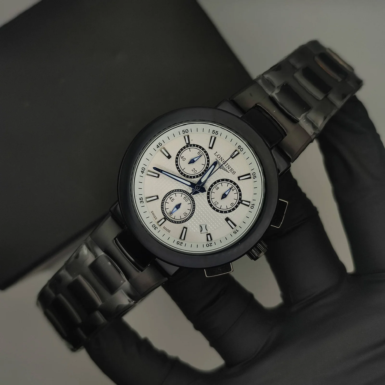Master Grade Chronograph Watch – White Dial Black Chrono